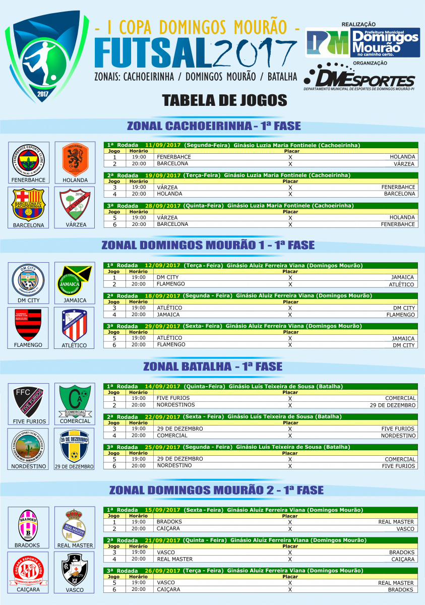 Ao todo 16 equipes participarão da competição, divididos em 04 Zonais, nas sedes Cachoeirinha, Batalha e Domingos Mourão. Durante a reunião foram discutidos alguns itens do regulamento e realizado o sorteio das Zonais de Domingos Mourão.