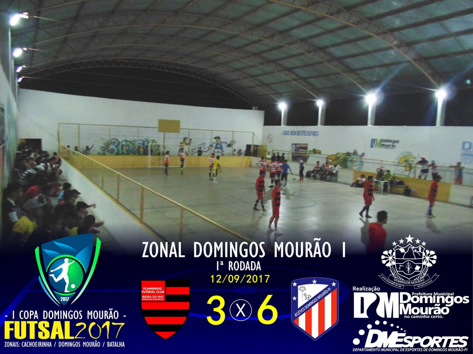 Na noite desta terça (12), o Departamento Municipal de Esports de Domingos Mourão - DMEsportes, deu início a 1ª edição da Copa Domingos Mourão de Futsal, com realização de duas partidas válidas pela primeira rodada da Zonal 01 de Domingos Mourão.